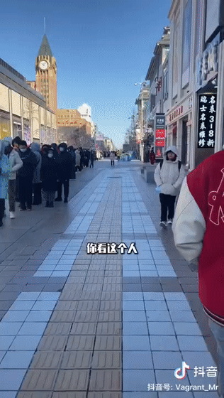 寒风中王府井大街排起了长队