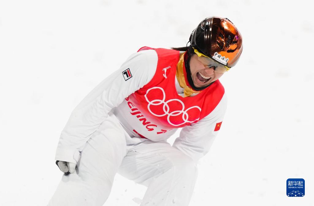 2月10日,中国队选手徐梦桃在比赛中庆祝。