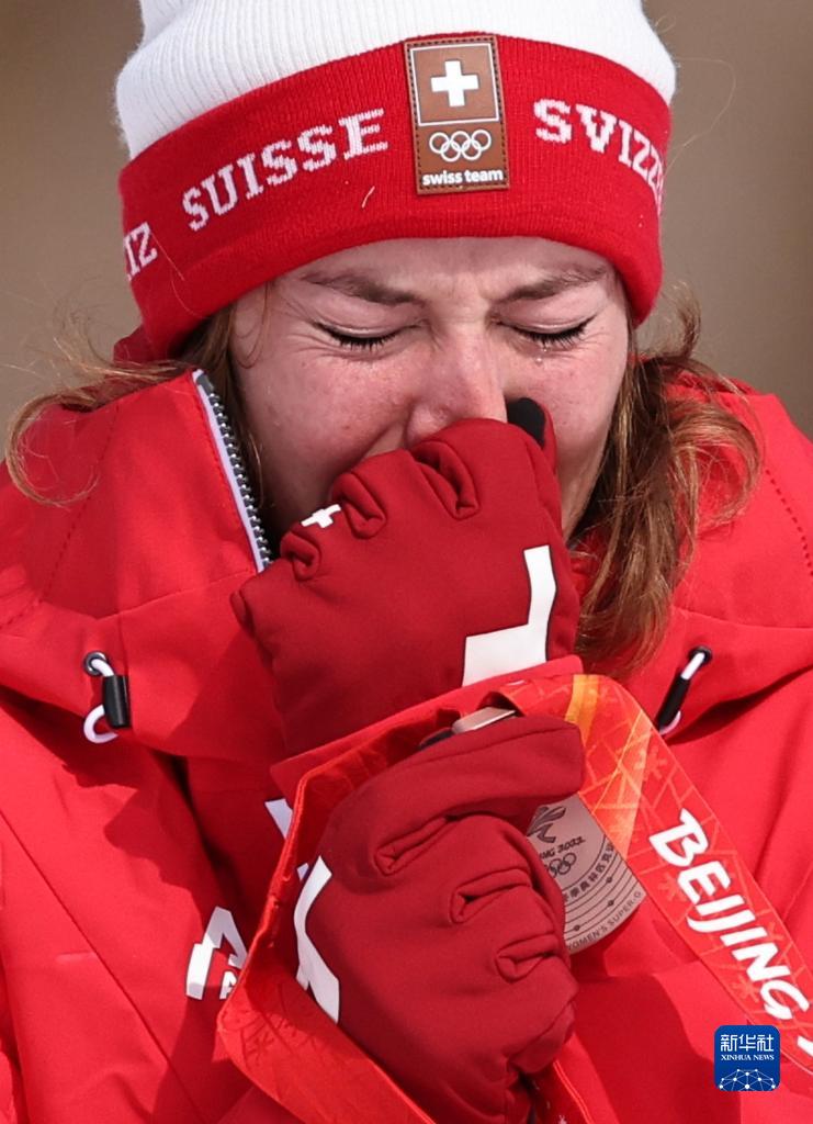 2月11日,获得季军的瑞士选手米歇尔·吉辛在奖牌颁发仪式上激动落泪。