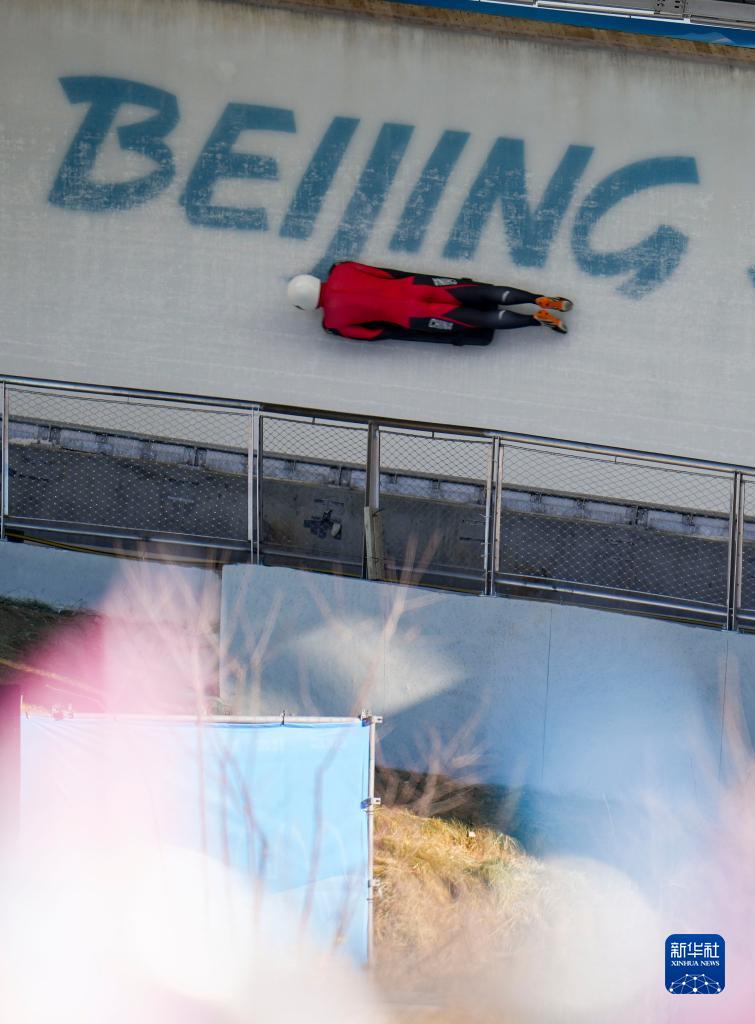 张京在国家雪车雪橇中心赛道试滑(2月2日摄)。新华社记者 江文耀 摄
