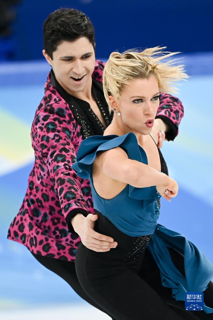 2月12日,美国选手麦迪逊·哈贝尔(左)/扎卡里·多诺霍在比赛中。