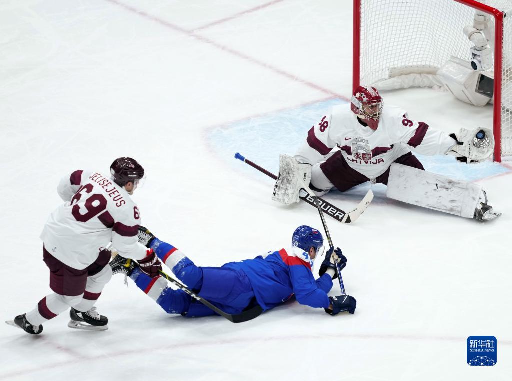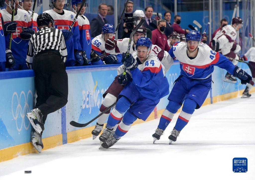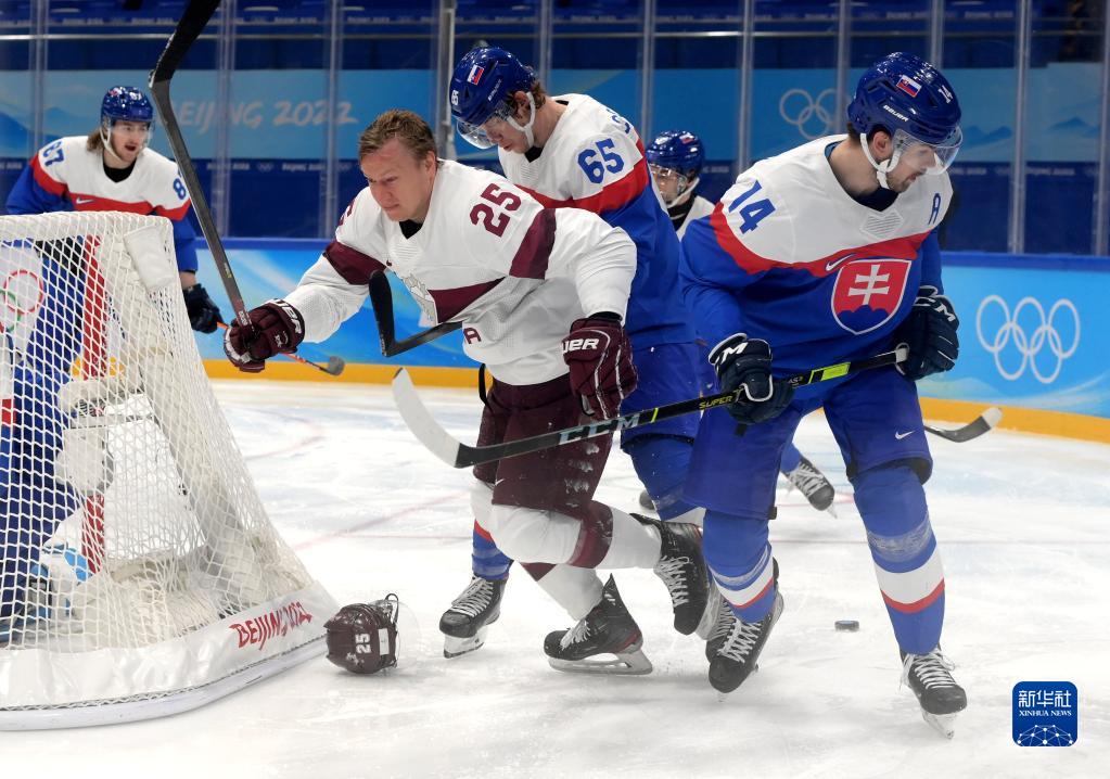 当日,在国家体育馆举行的北京2022年冬奥会男子冰球小组赛中,斯洛伐克队以5比2战胜拉脱维亚队。