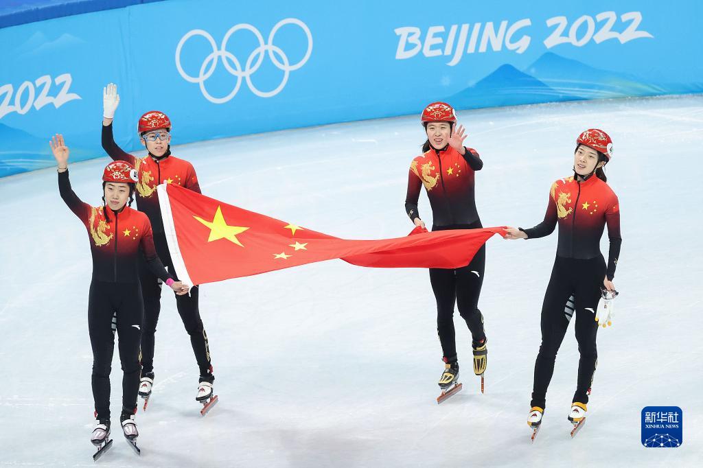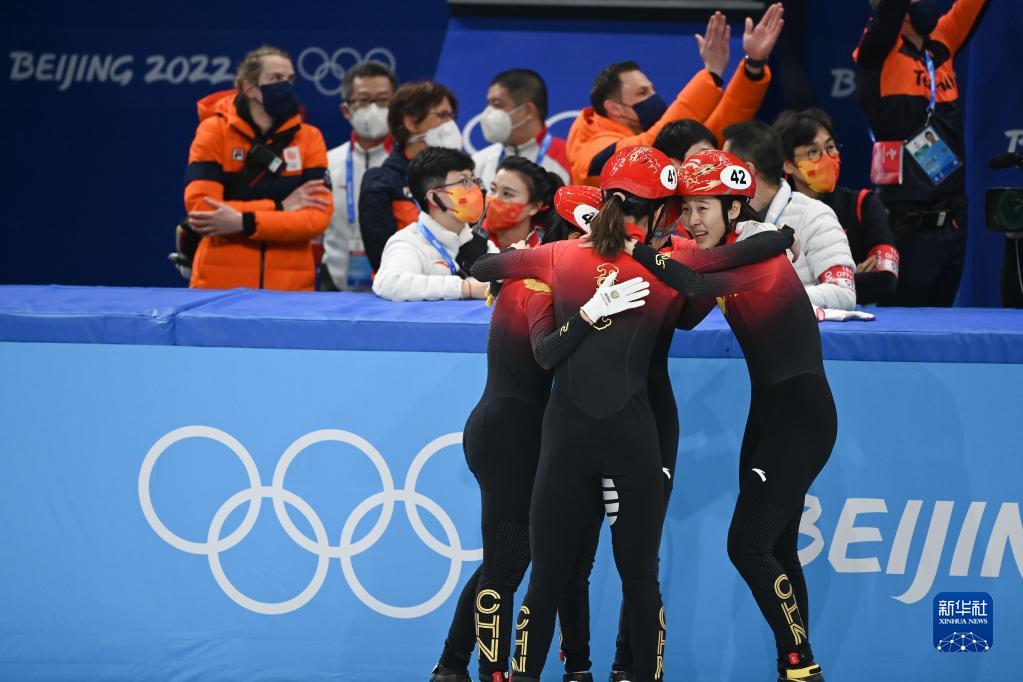 当日,在首都体育馆举行的北京2022年冬奥会短道速滑项目女子3000米接力决赛中,中国队获得季军。