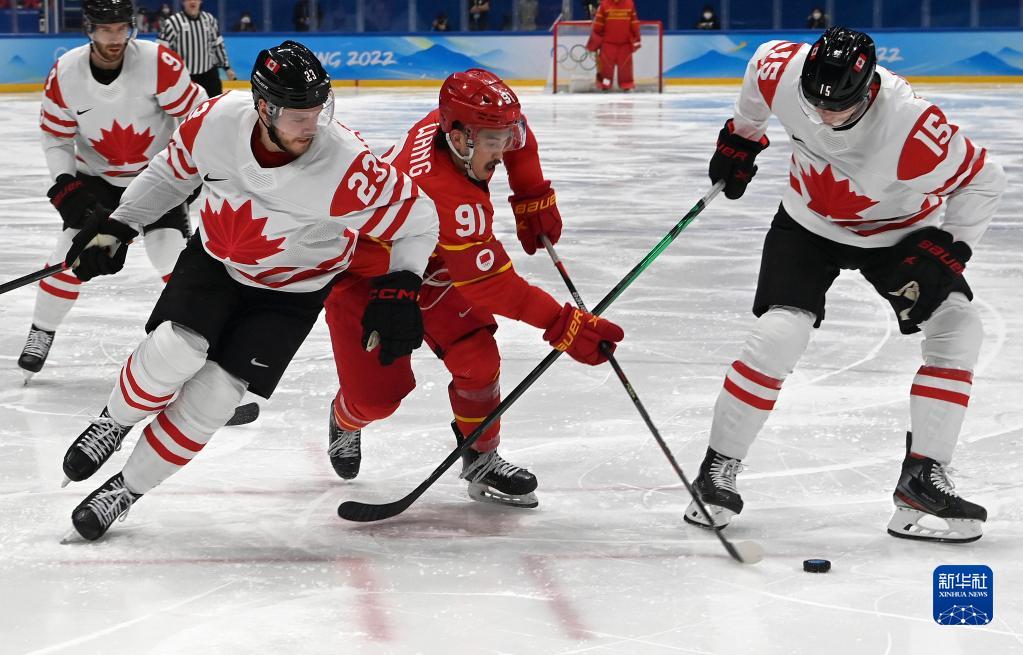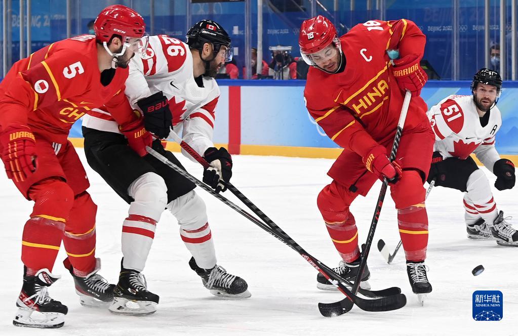 当日,在国家体育馆举行的北京2022年冬奥会男子冰球小组赛中,中国队以0比5不敌加拿大队。
