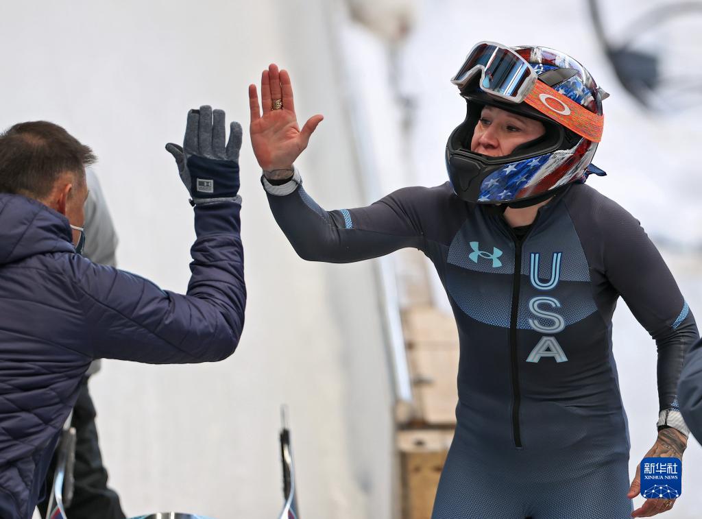 当日,北京2022年冬奥会女子单人雪车比赛在国家雪车雪橇中心举行,美国选手凯莉·汉弗莱斯夺得冠军。