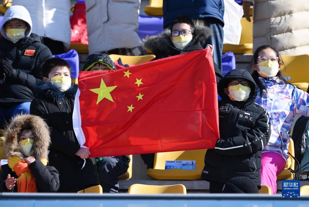 2月14日,观众为中国选手加油。