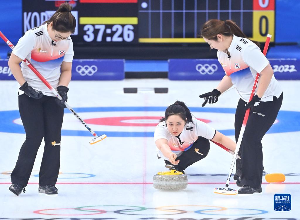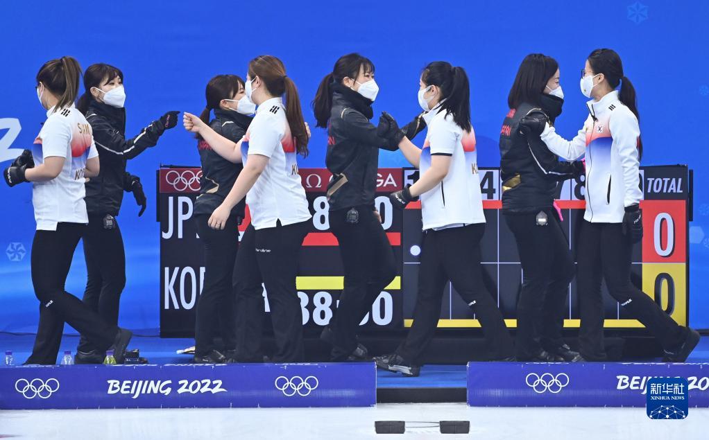 当日,在北京国家游泳中心“冰立方”举行的北京2022年冬奥会女子冰壶循环赛中,韩国队以10比5战胜日本队。