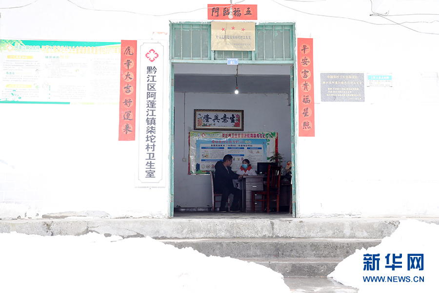 2月10日,帅小云在村卫生室(右)给村民看病。新华网发(杨敏 摄)