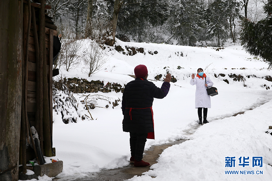 新华网重庆2月14日电(李海岚 杨敏)2月10日,一场大雪覆盖了重庆市黔江区阿蓬江镇,另一抹白色的身影出现在雪白大地间,41岁的高山女村医帅小云,成为雪地里最别致的风景。