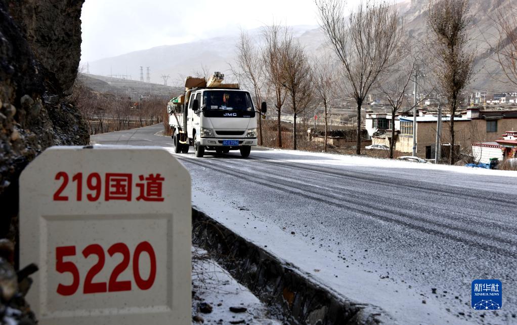 西藏洛扎县境内的国道与道路旁的民居(1月19日摄)。新华社记者 陈尚才 摄