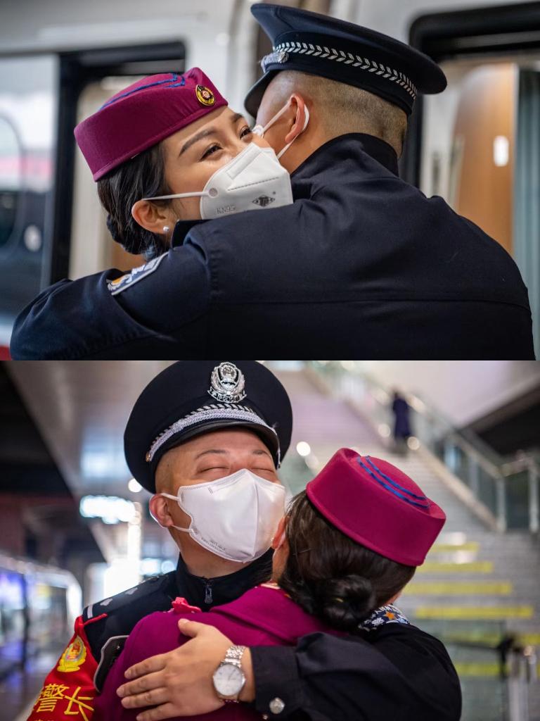 “像今天这样能够在待乘室见上一面,已经很幸福了。有时我值勤的列车刚好到终点站,周幸就带着乘务箱准备值乘任务。”祁悦说,今年春运,他们只有8天是在一起的。