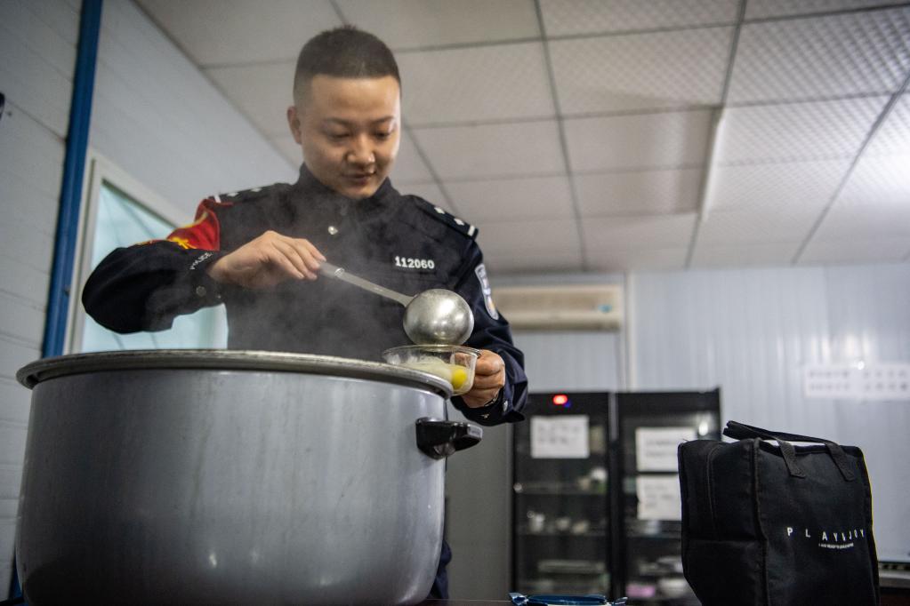 早上7点,已经换上黑色制服、完成出勤准备的祁悦,从单位食堂的锅里,舀起最后一颗汤圆,装进为妻子准备的饭盒。
