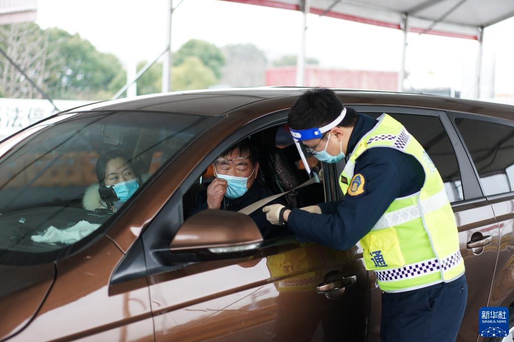 2月15日,车辆驾乘人员在京沪高速公路苏州新区收费站接受查验。新华社记者 季春鹏 摄