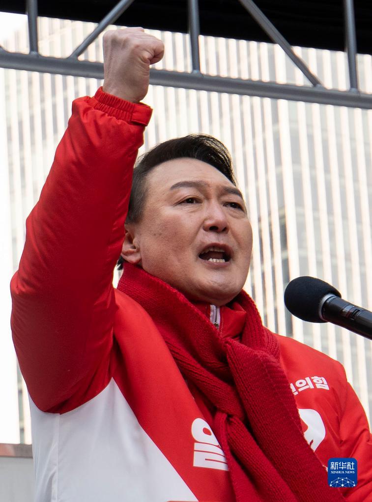 2月15日,候选人尹锡悦在韩国首尔参加竞选活动。