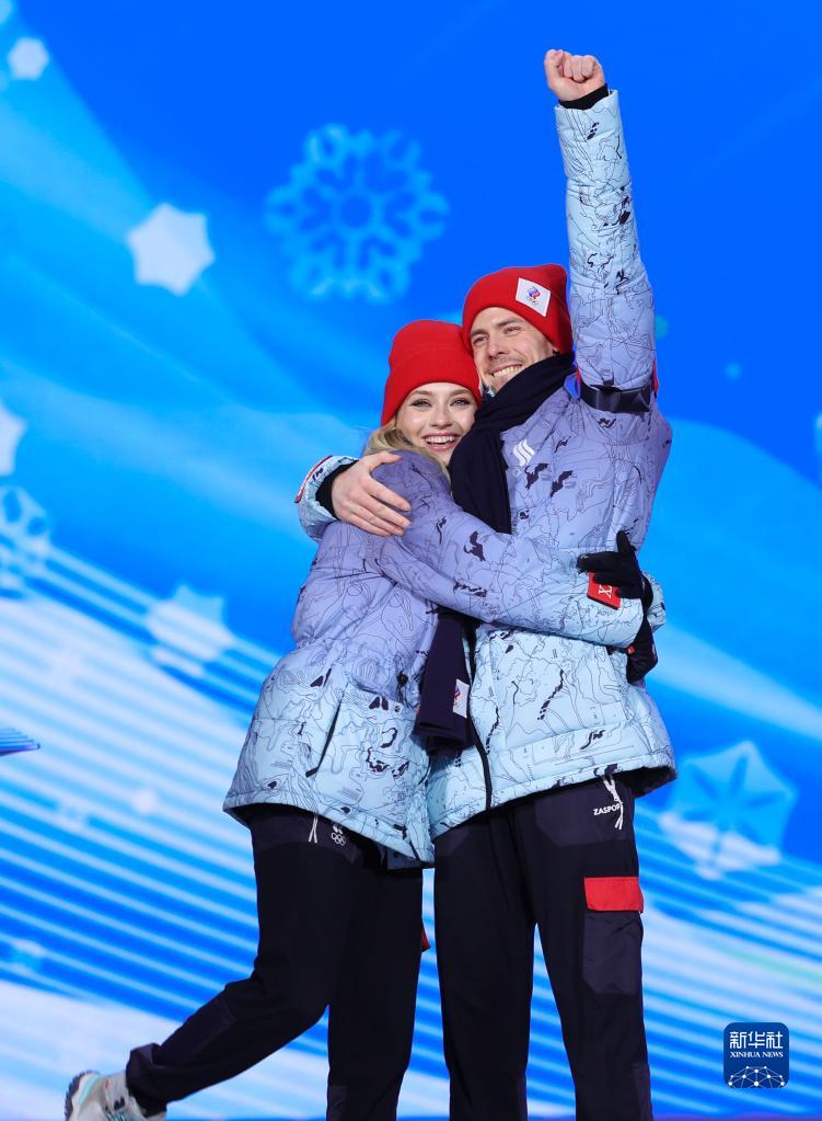 当日,北京2022年冬奥会花样滑冰冰上舞蹈奖牌颁发仪式在北京赛区颁奖广场举行。