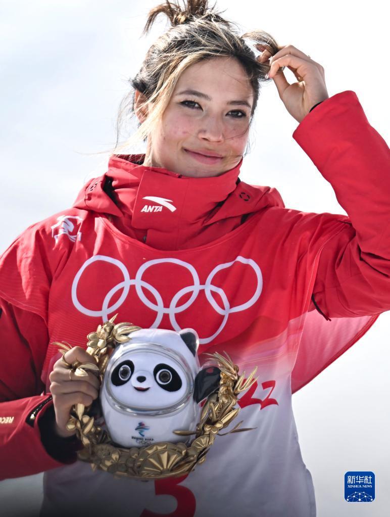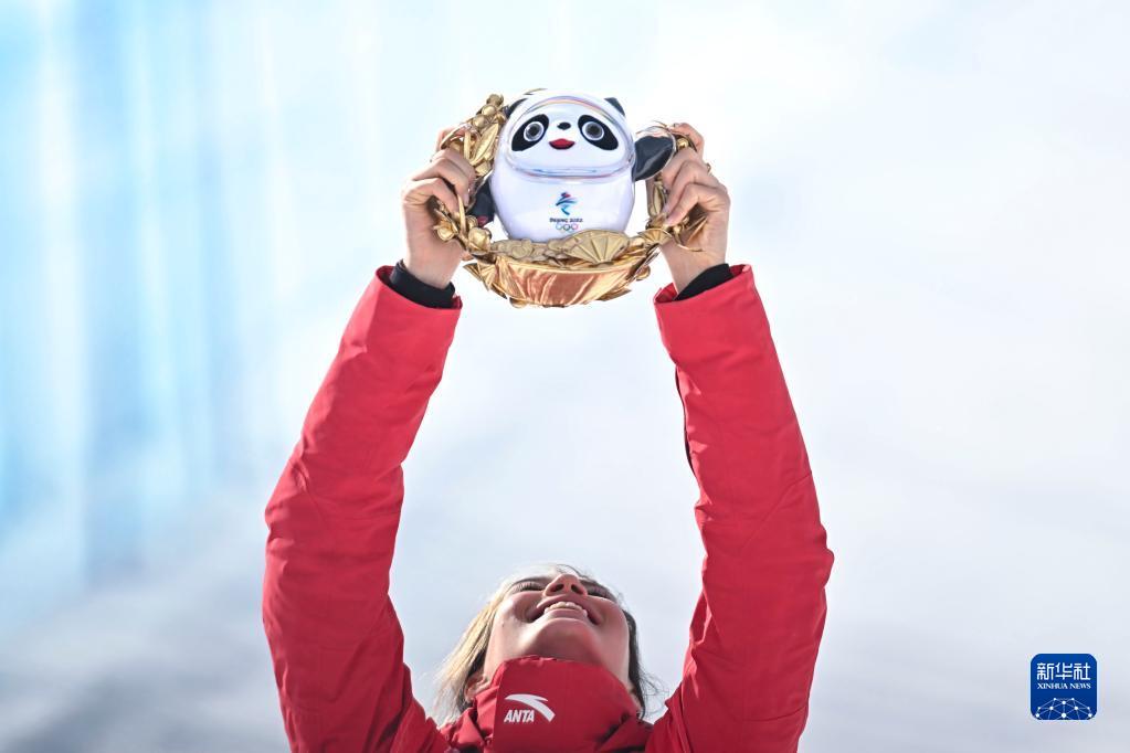 2月15日,中国选手谷爱凌在颁发纪念品仪式上。
