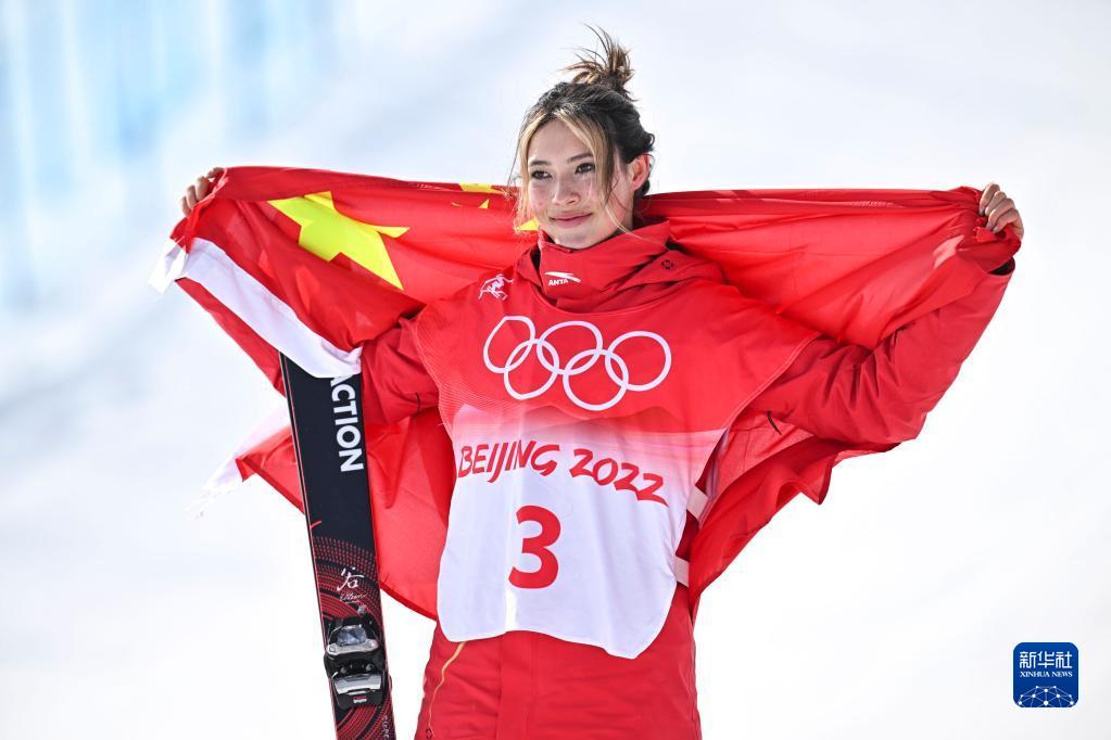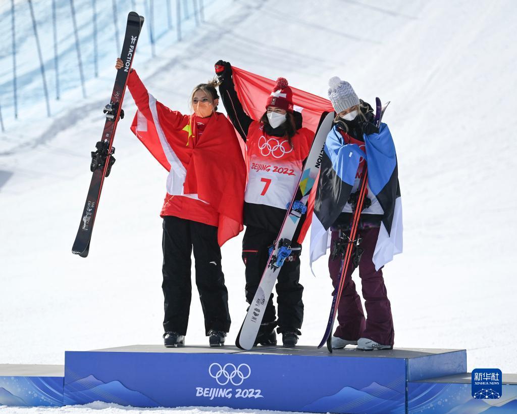 当日,北京2022年冬奥会自由式滑雪女子坡面障碍技巧决赛在张家口云顶滑雪公园举行。中国选手谷爱凌获得银牌。