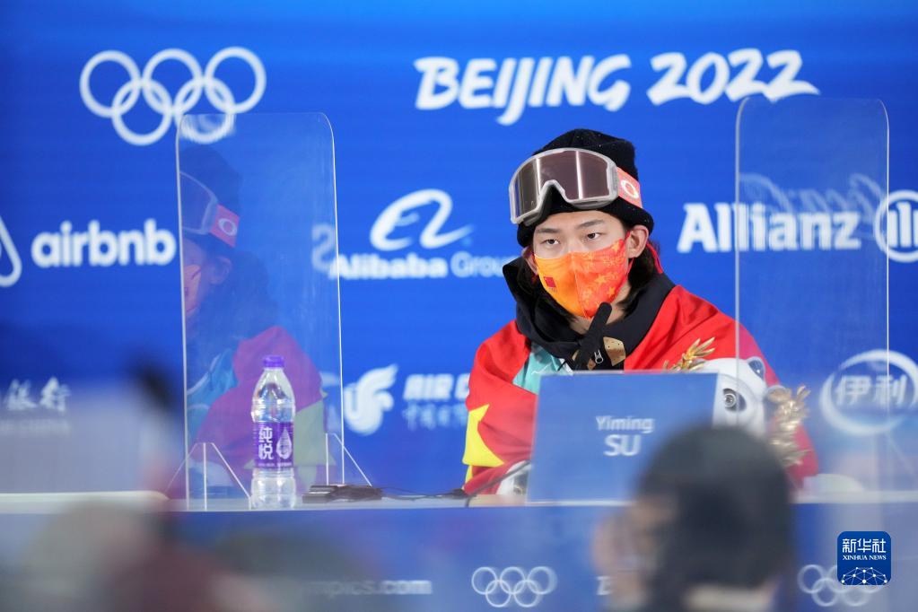 2月15日,中国选手苏翊鸣在新闻发布会上。