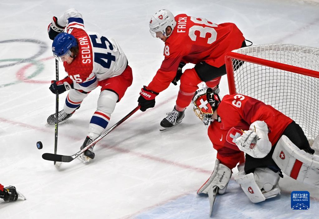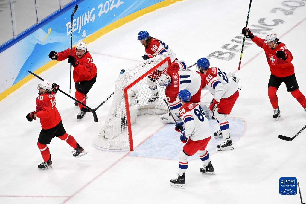 当日,在国家体育馆举行的北京2022年冬奥会男子冰球晋级资格赛中,瑞士队以4比2战胜捷克队。