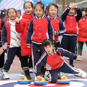 当日是合肥市中小学幼儿园春季开学第一天,合肥市泰山路幼儿园在开学典礼上设置了“旱地冰壶”“旱地冰球”“滑雪橇”等游戏环节,让孩子们了解冬奥会的相关知识,感受运动的乐趣,迎接新学期的到来。