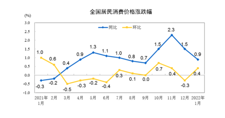 国家统计局16日发布数据,1月份,全国居民消费价格指数(CPI)同比上涨0.9%,涨幅比上月回落0.6个百分点,居民消费价格总体平稳。专家分析,2022年我国CPI或将延续温和上涨态势,保持物价平稳运行具有坚实基础。