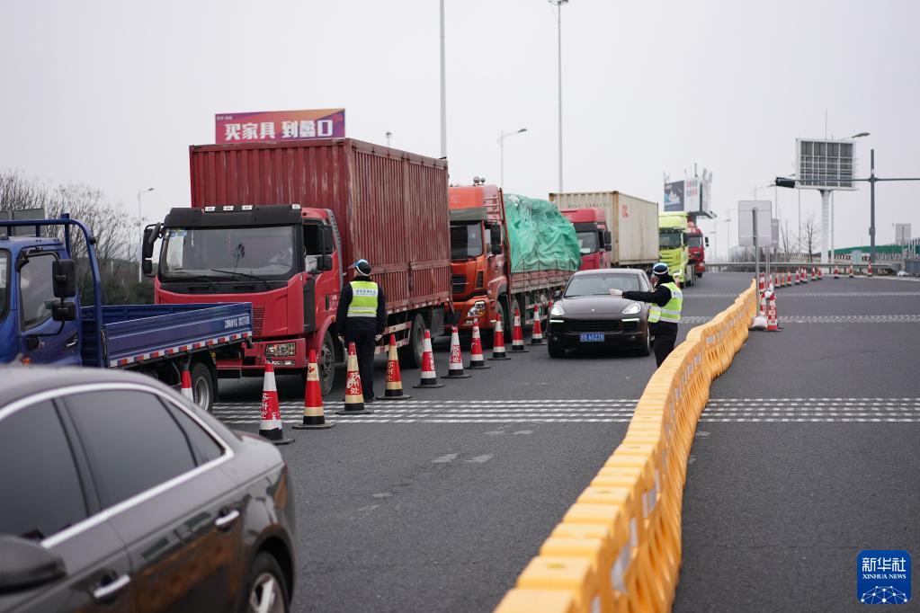 2月15日,执法人员在京沪高速公路苏州新区收费站查验。新华社记者 季春鹏 摄