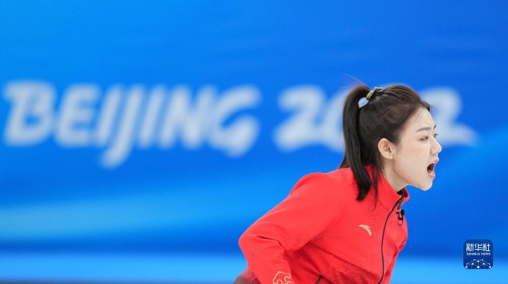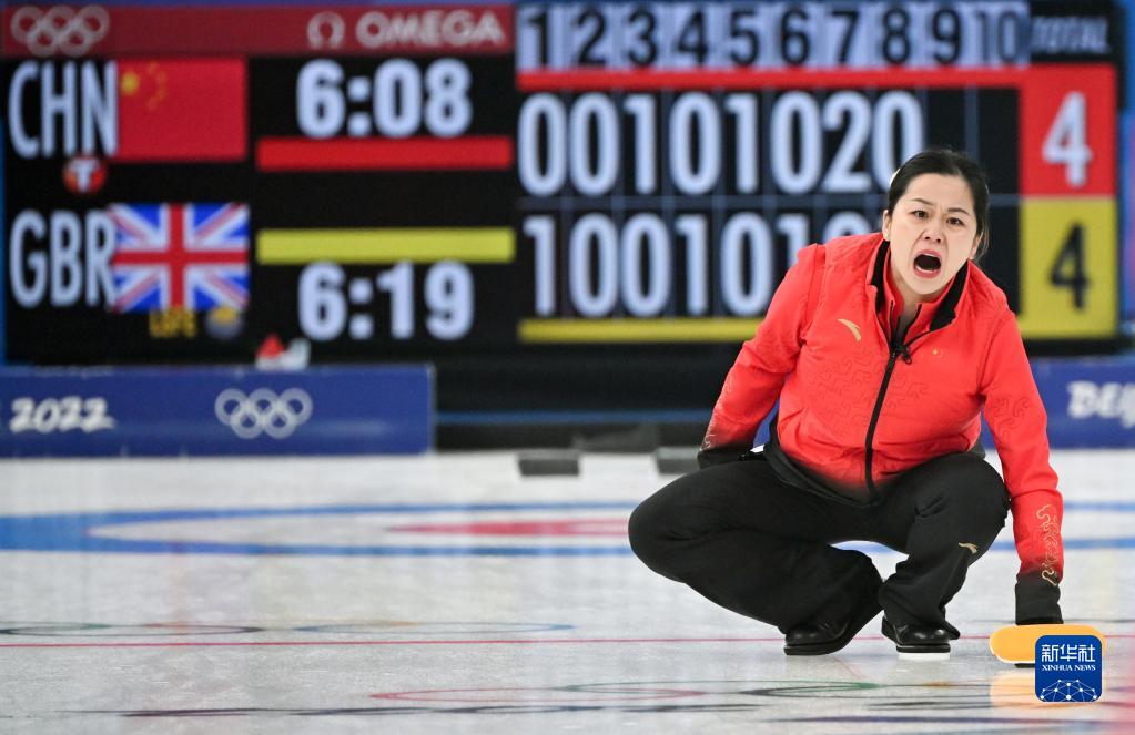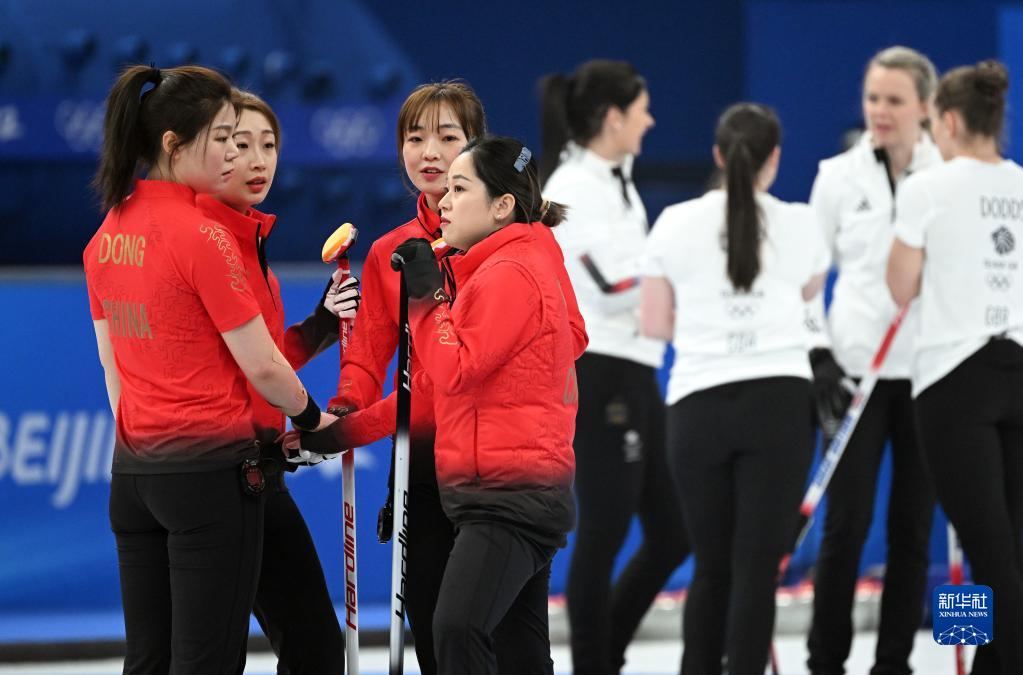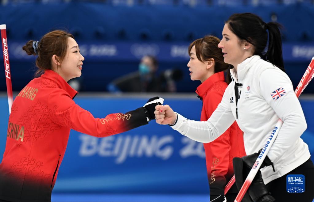 2月16日,在北京2022年冬奥会女子冰壶循环赛中,中国队以8:4战胜英国队。新华社记者李贺摄