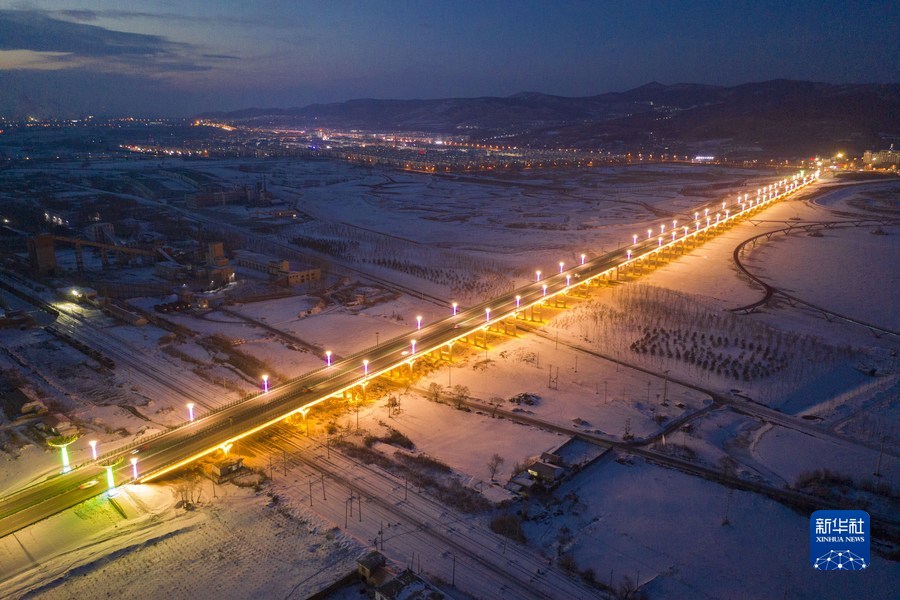 1月12日拍摄的七台河市桃山区冠军桥(无人机照片)。 新华社记者 谢剑飞 摄