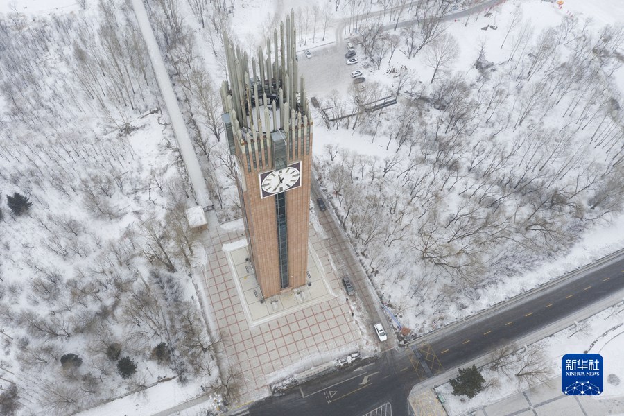 1月8日拍摄的七台河短道速滑冠军馆(无人机照片)。七台河短道速滑冠军馆于2019年开馆,主要展示当地40余年滑冰事业的历史。新华社记者 谢剑飞 摄