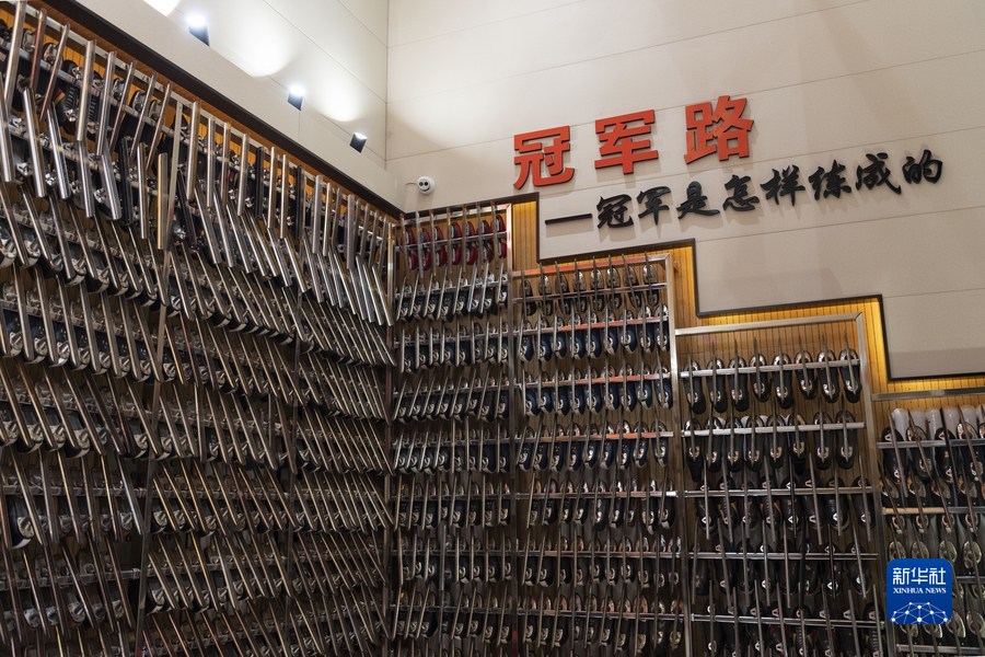 这是1月8日在七台河短道速滑冠军馆内拍摄的历年来运动员们用过的冰刀(1月8日摄)。新华社记者 谢剑飞 摄