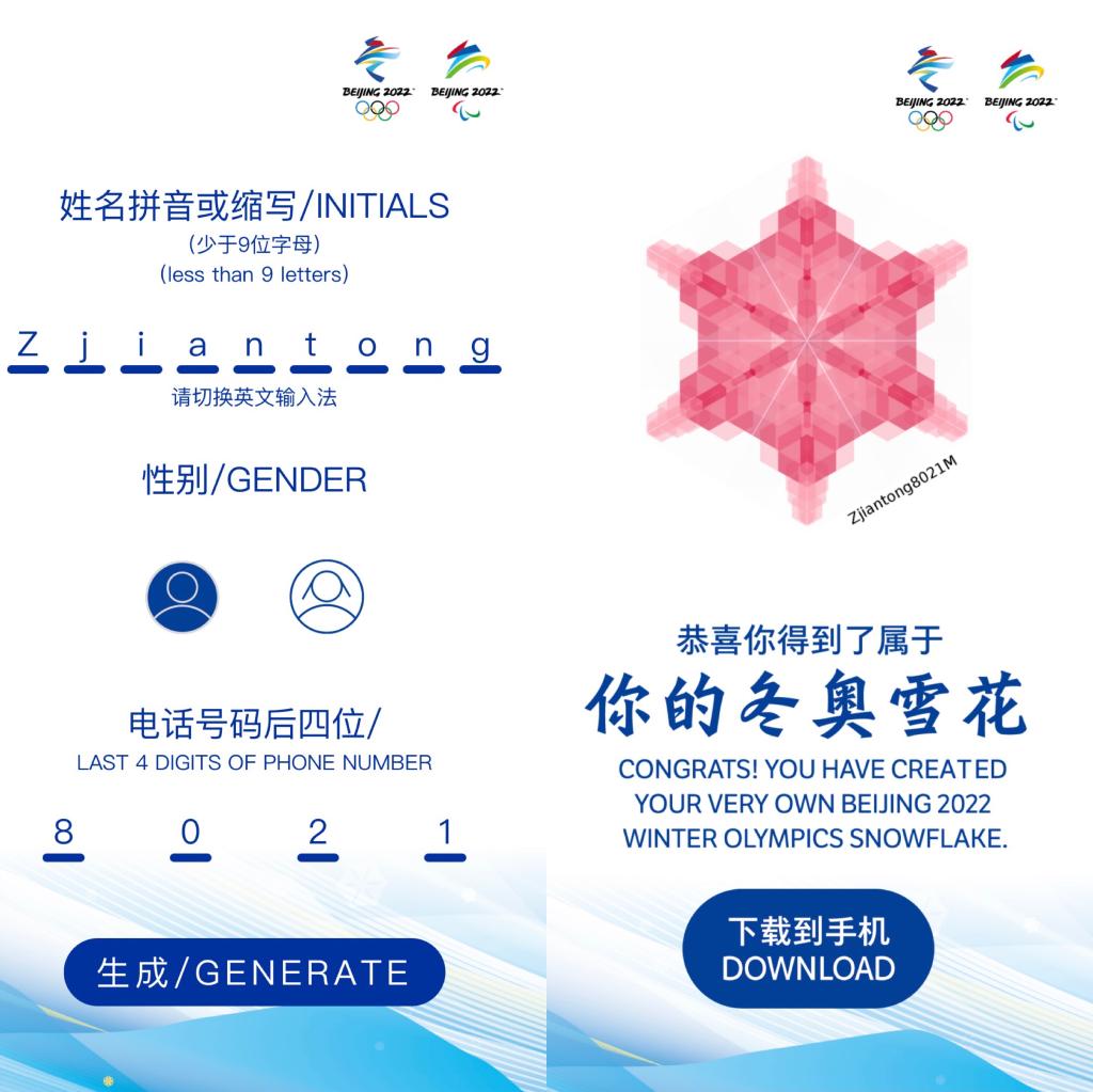 每个人的雪花都与北京冬奥会相关