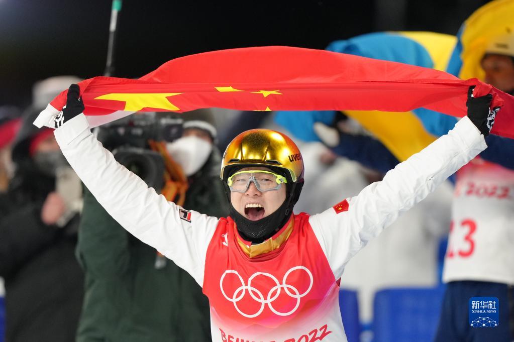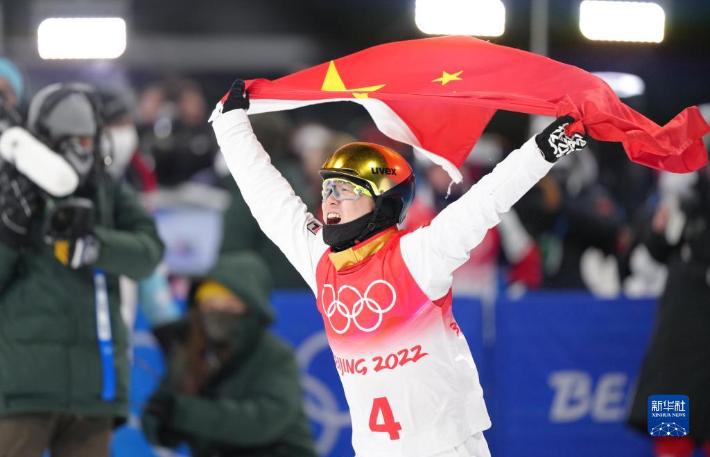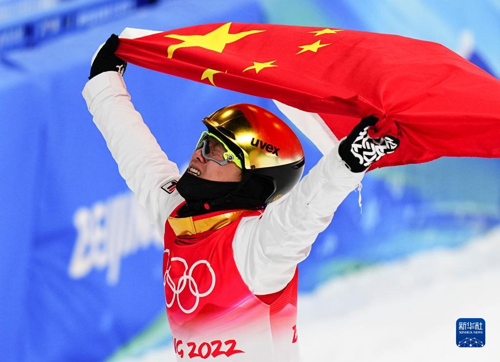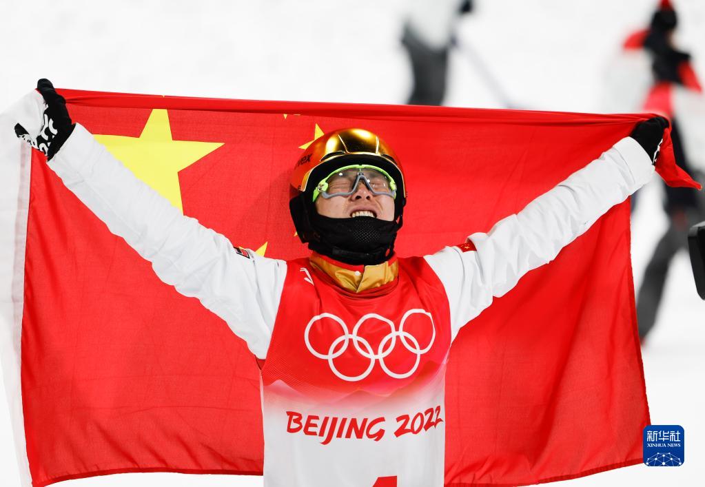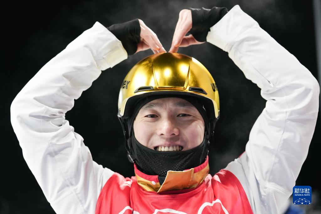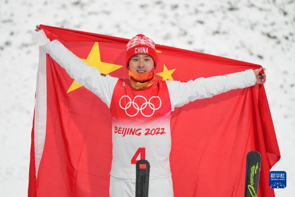 当日,北京2022年冬奥会自由式滑雪男子空中技巧决赛在张家口赛区举行,中国选手齐广璞夺得冠军。