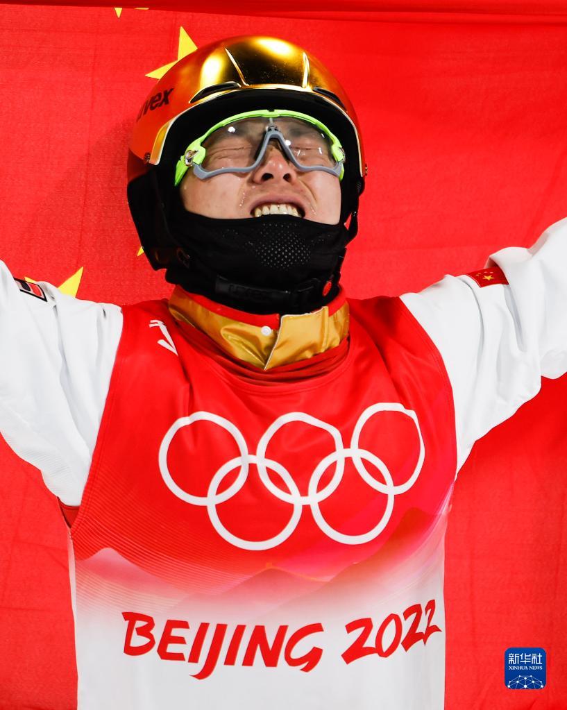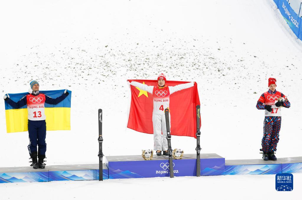 当日,北京2022年冬奥会自由式滑雪男子空中技巧决赛在张家口赛区举行,中国选手齐广璞获得冠军。