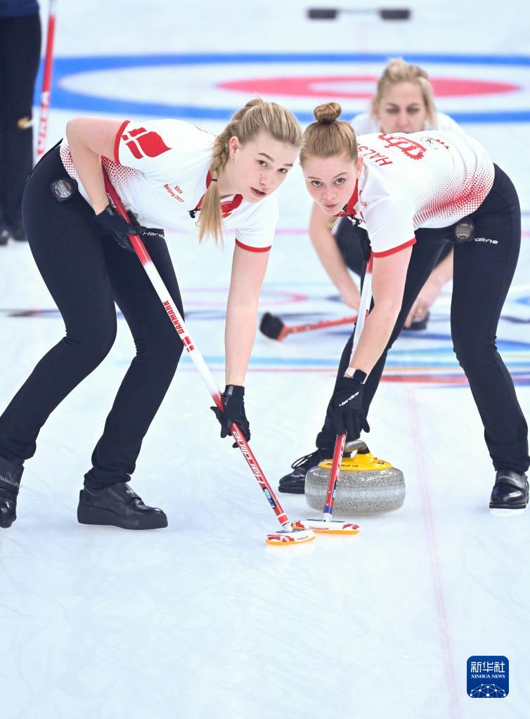 当日,在北京国家游泳中心“冰立方”举行的北京2022年冬奥会女子冰壶循环赛中,韩国队以8比7战胜丹麦队。