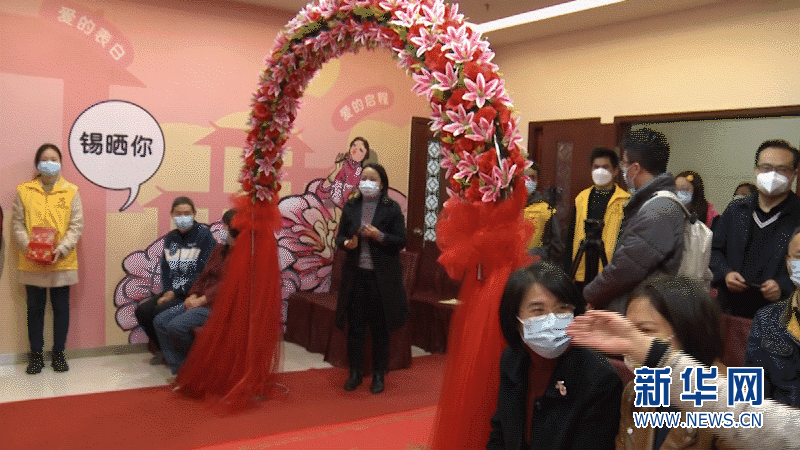 新人的家人亲友们共同见证了这一喜悦时刻。新华网发(虞力瑞 摄)