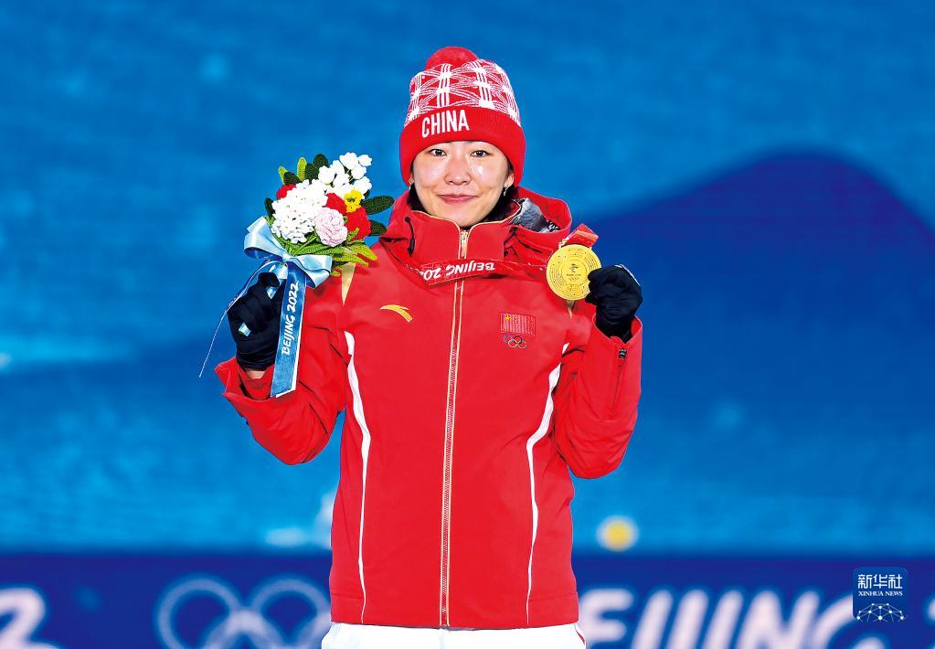 2月15日,冠军中国选手徐梦桃在奖牌颁发仪式上。新华社记者邓华摄