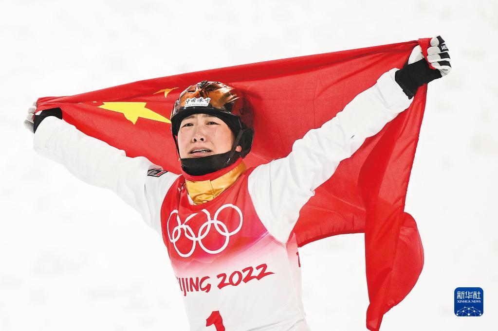 国旗缓缓升起,国歌响彻整个广场,徐梦桃轻声哼唱,两行热泪从她的脸颊轻轻滑过……
