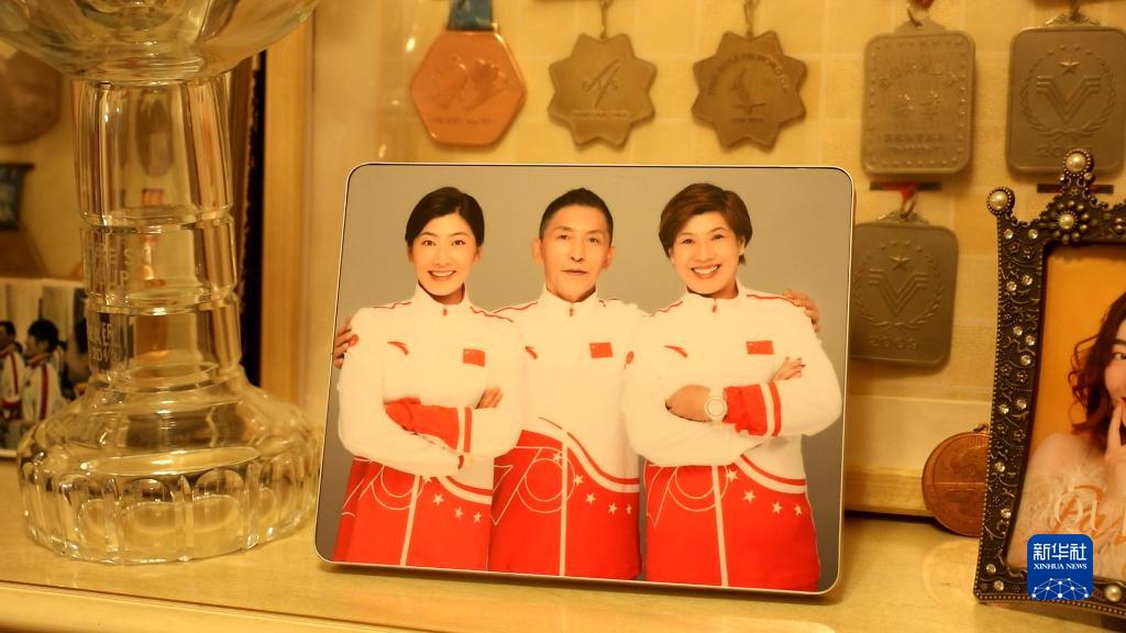 辽宁鞍山徐梦桃家中一家三口合影。新华每日电讯记者赵泳摄