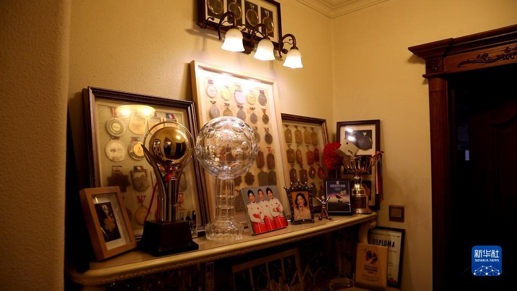 辽宁鞍山徐梦桃家中摆放整齐的奖杯和奖牌。新华每日电讯记者赵泳摄