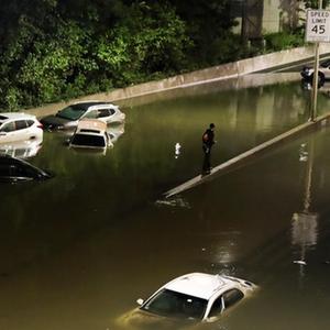 2021年9月2日,美国纽约一条主要道路上的车辆被积水淹没。受飓风“艾达”影响,暴雨9月1日晚开始袭击纽约市及周边地区,并引发洪涝灾害。(新华社记者 王迎 摄)