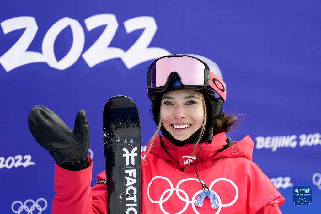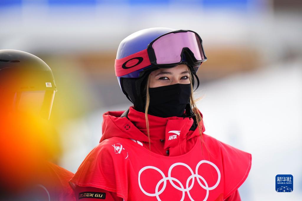 2月17日,中国队选手谷爱凌在比赛前训练。