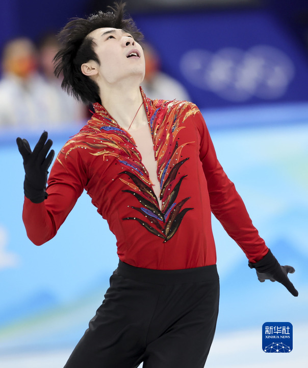 2月10日,中国选手金博洋在北京冬奥会花样滑冰男单自由滑比赛中。新华社记者兰红光摄