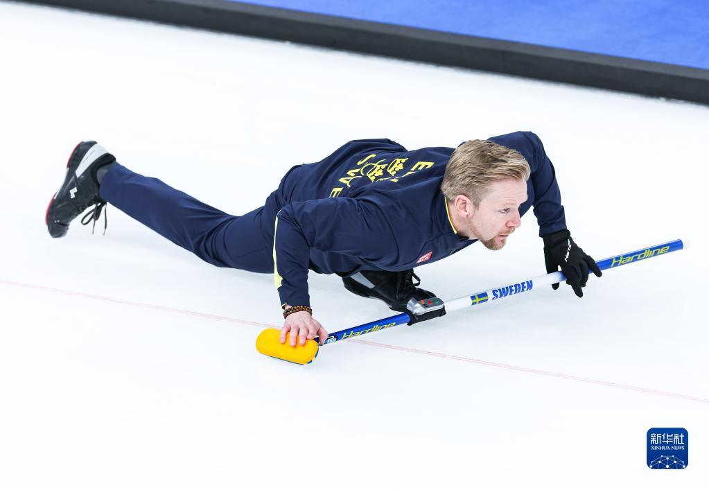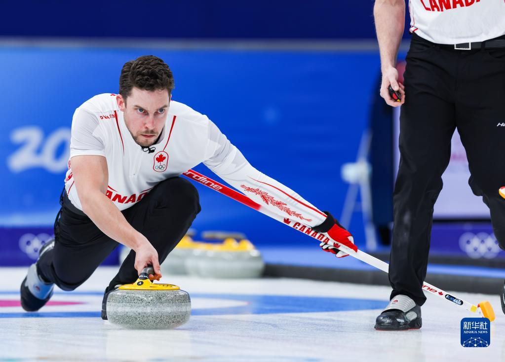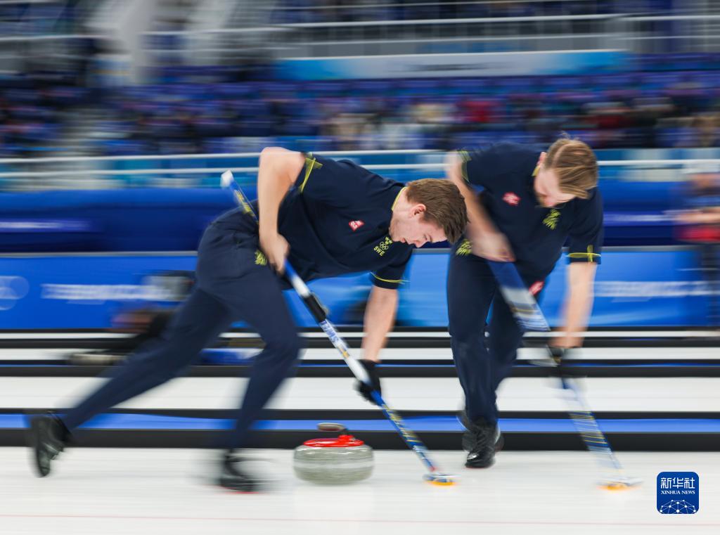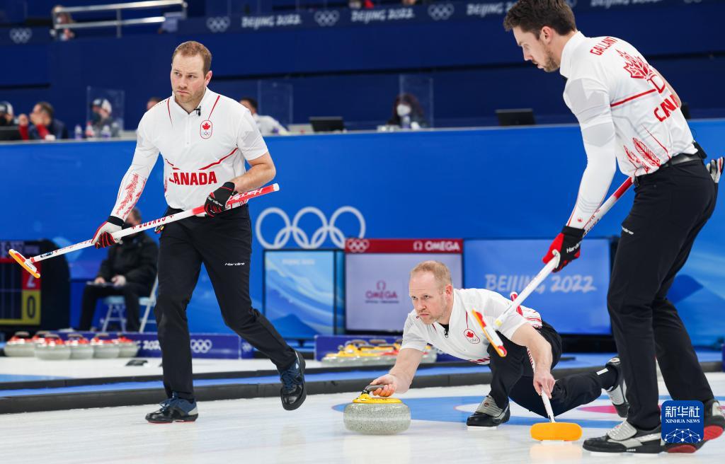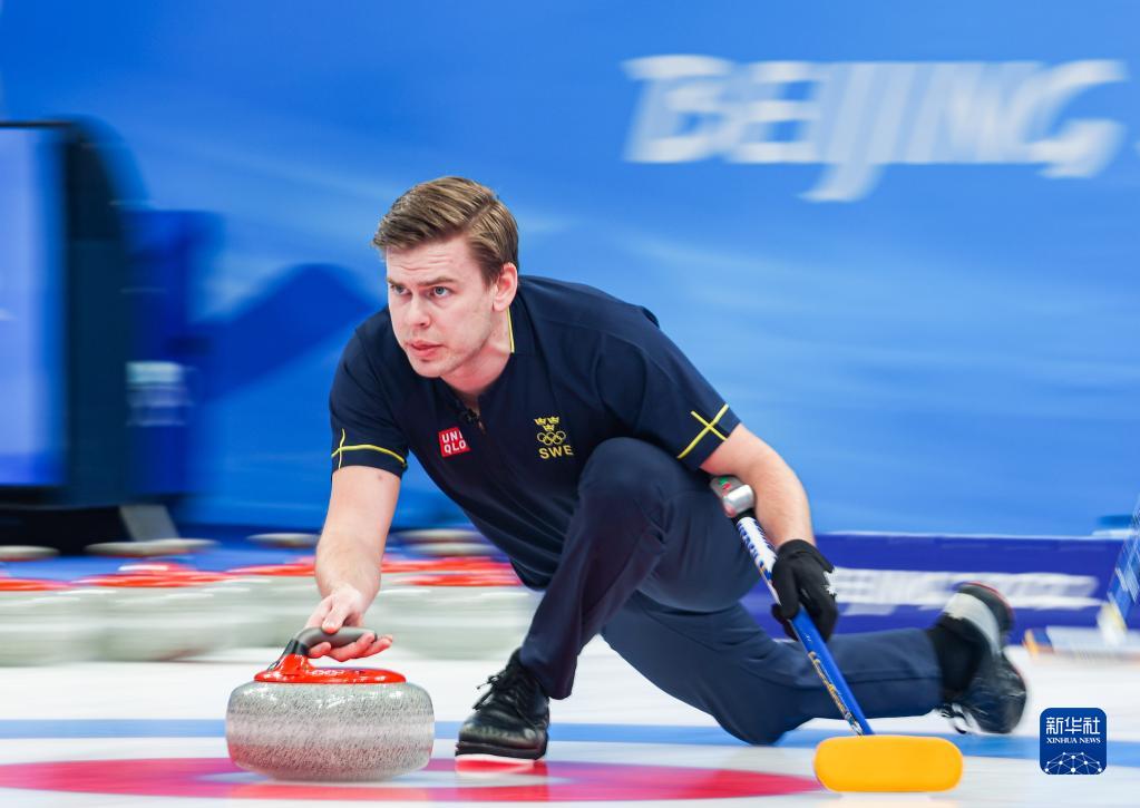 当日,在北京国家游泳中心“冰立方”举行的2022年北京冬奥会男子冰壶半决赛中,瑞典队以5比3战胜加拿大队。