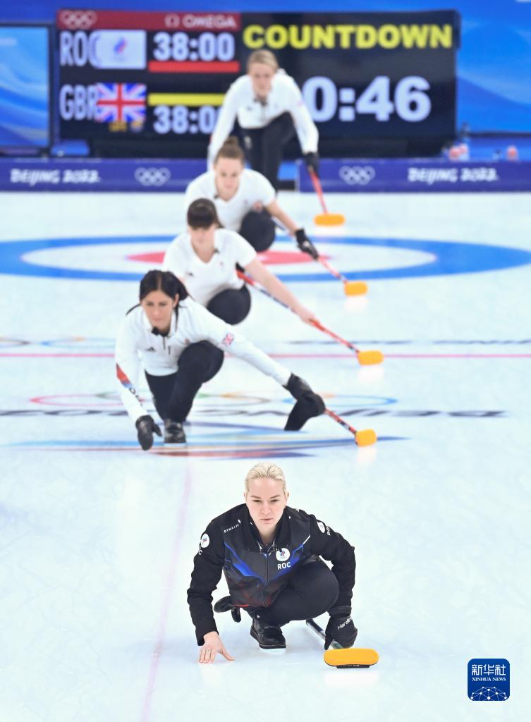 当日,在北京国家游泳中心“冰立方”举行的北京2022年冬奥会女子冰壶循环赛中,英国队以9比4战胜俄罗斯奥委会队。