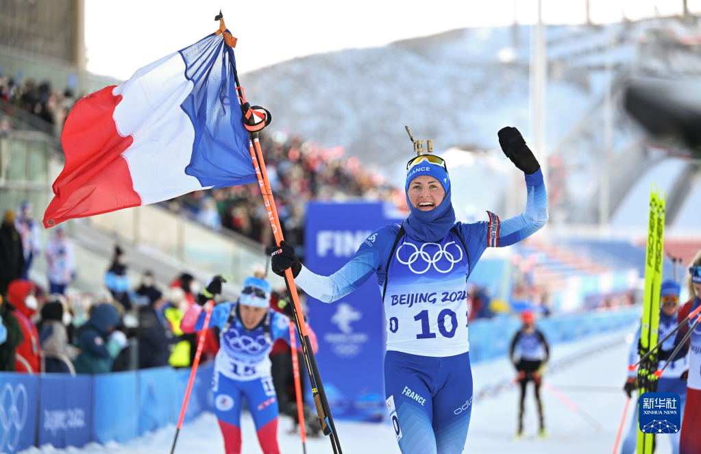 法国选手朱斯蒂娜·布雷萨·布歇在平昌冬奥会获得女子接力铜牌,这次北京冬奥会,她报名参加了全部4项个人项目,但之前成绩都不甚理想。当天的比赛中,她在前两轮射击中共脱靶3发,排名一度掉至21位。然而第三轮立姿射击时,她以5发全中的成绩将自己的排名提升至第二位。后凭借滑行,来到第一位,并一直将领先优势保持至最后,以40分18秒的成绩夺冠。