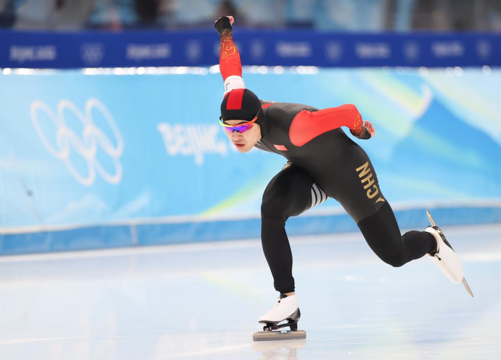 2月18日,宁忠岩在速度滑冰男子1000米比赛中。新华社记者丁旭摄