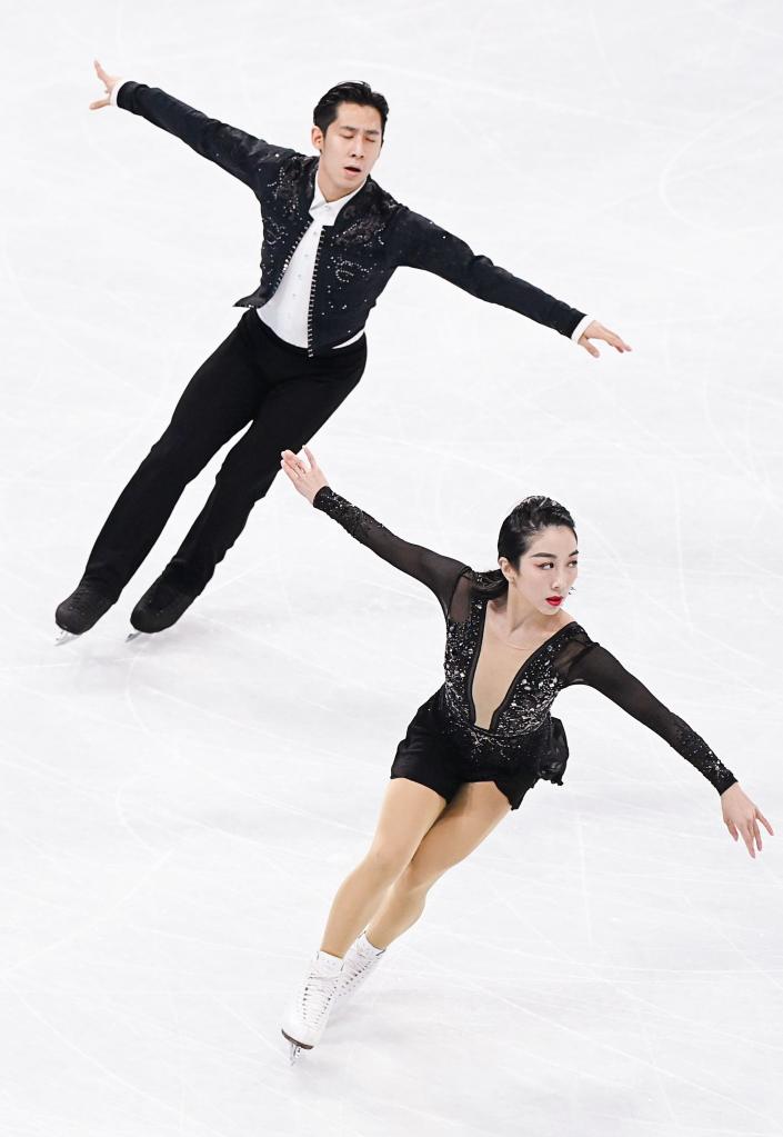 2月18日,隋文静(下)/韩聪在双人滑短节目比赛中。新华社记者熊琦摄