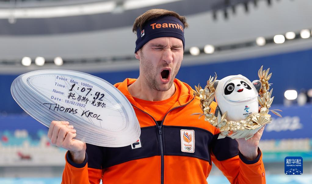 当日,北京2022年冬奥会速度滑冰男子1000米决赛在国家速滑馆“冰丝带”举行,荷兰选手托马斯·克罗尔夺得冠军。