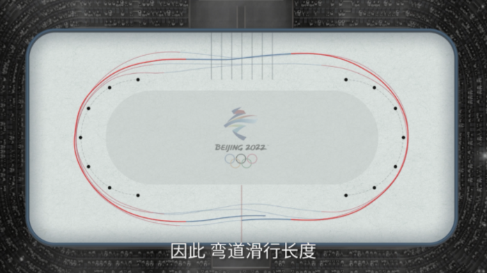 图为“小诤看冬奥”报道产品。它通过用短道速滑运动员真实数据而构建的滑行轨迹,用于分析“中国为什么赢得金牌”。
