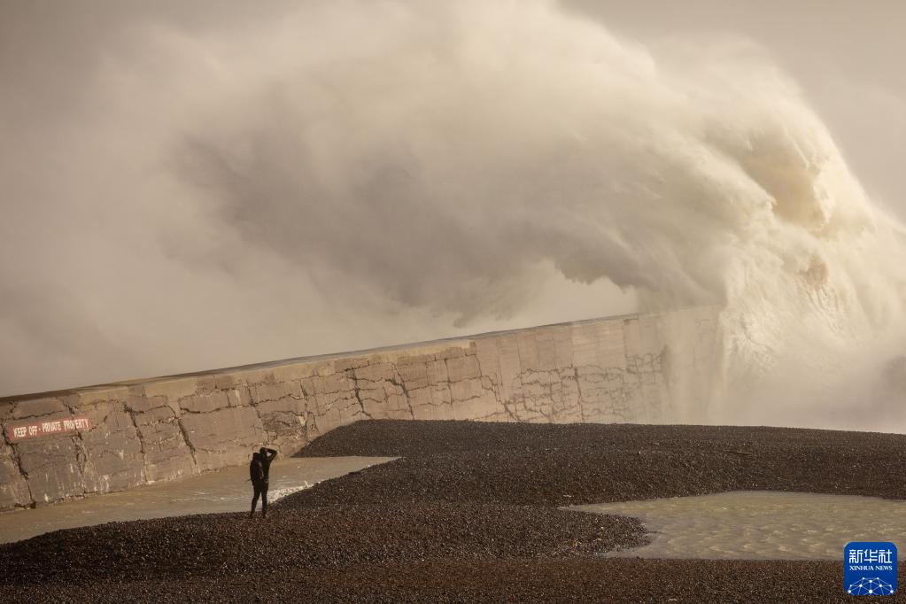 2月18日,在英国纽黑文,巨浪拍打堤岸。